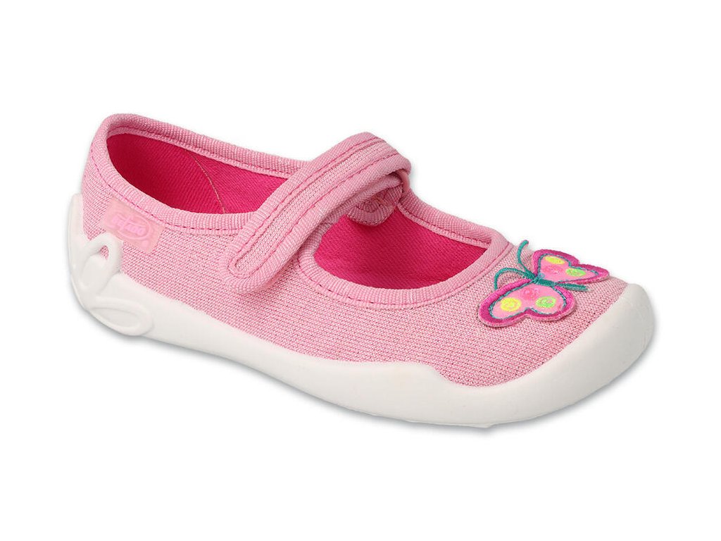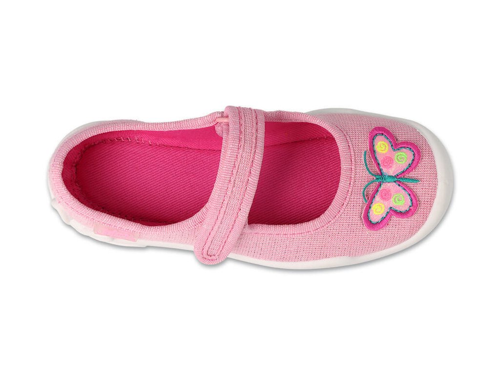 Dívčí balerínky Befado motýl, zapínání na suchý zip. Pevná pata, pružná a prodyšná podrážka.
