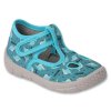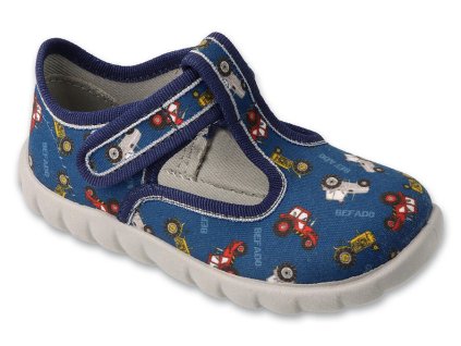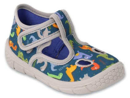 Chlapecké bačkory Befado dinosaurus, zapínání na suchý zip. Pevná pata a pružná podrážka, SOFT-B systém - systém ochrany chodidel - vyměkčená stélka, poskytující zvýšené pohodlí při chůzi.