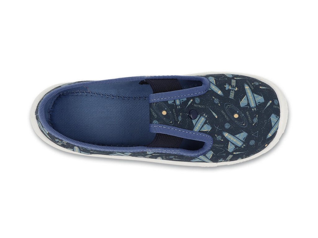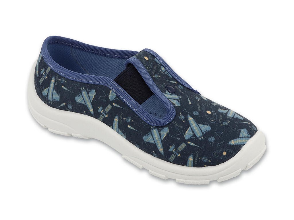 Chlapecké bačkory Befado letadla. Pevná pata a pružná a prodyšná podrážka, SOFT-B systém - systém ochrany chodidel - vyměkčená stélka, poskytující zvýšené pohodlí při chůzi.