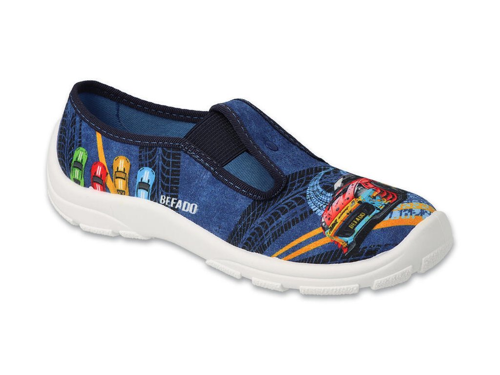 Chlapecké bačkory Befado auta. Pevná pata a pružná a prodyšná podrážka, SOFT-B systém - systém ochrany chodidel - vyměkčená stélka, poskytující zvýšené pohodlí při chůzi.