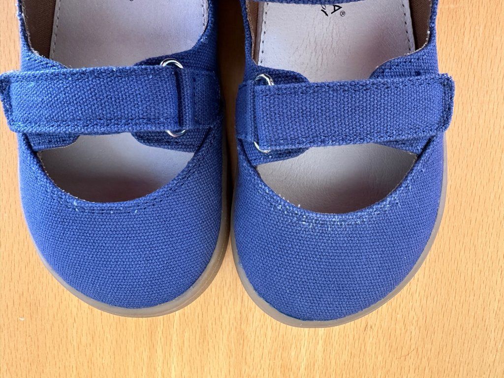 Chlapecké barefootové sandály Protetika Tafi denim. Zapínání na 2 suché zipy, uvnitř vyjímatelná stélka bez podpory klenby. Podešev má jemný protiskluzový dezén, je odolná, ale velmi ohebná. Boty mají nulový podpatek, dostatečně širokou špičku, jsou vhodné i pro dominantní palec, zpevněný opatek.