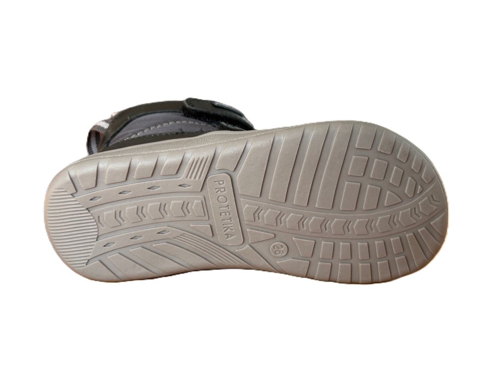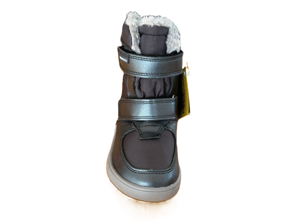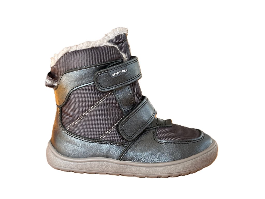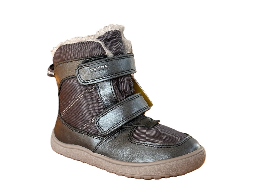 Dívčí barefootové zimní boty Protetika Lora grey s membránou Pro-tex. Boty jsou vyššího střihu, jsou vyrobeny v kombinaci hladké kůže a textilu, uvnitř zateplené kožíškem. Zapínání na 2 suché zipy, uvnitř vyjímatelná textilní stélka bez podpory klenby. Boty mají nulový podpatek, dostatečně širokou špičku, jsou vhodné i pro dominantní palec, zpevněný opatek.