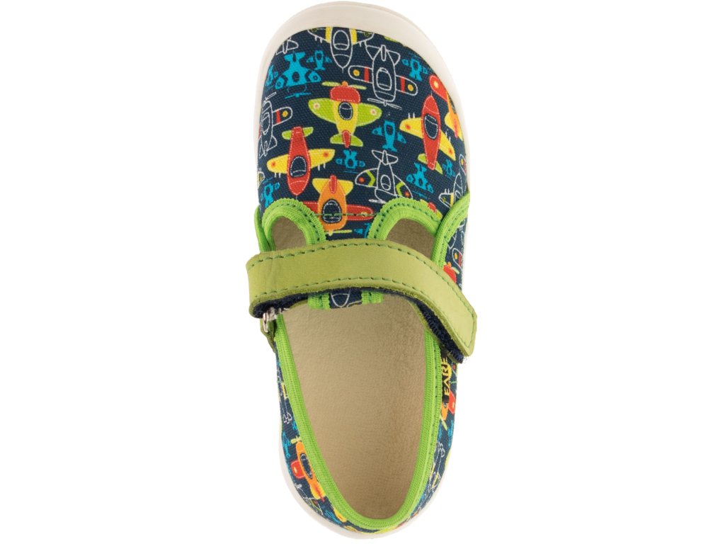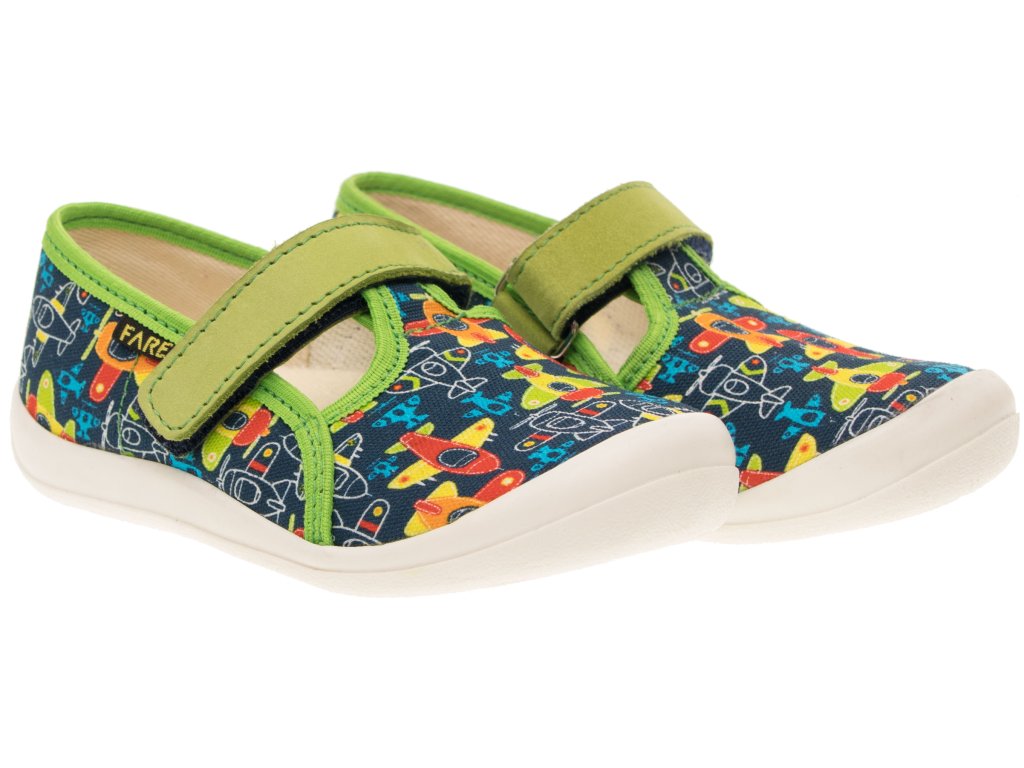 Přezůvková, nízká, textilní, lemovaná obuv na suchý zip. Materiál svršku je z barevného pracího kordu, vnitřek je z bavlněného kepru. Podešev je vyvinuta jako odlehčená, materiál podešve z termoplastického elastomeru, je neklouzavá pro všechny běžně používané podlahoviny. Tato domácí a přezůvková obuv odpovídá ortopedickým požadavkům a zásadám zdravého obouvání. Obuv je v prstové části prostorově vytvarována, je vybavena pevným opatkem. Vkládací stélka je vybavena komfortní tlumící vrstvou. Obuv je designována v souladu s módními trendy včetně podešve, která chrání přední část před rychlým opotřebením.