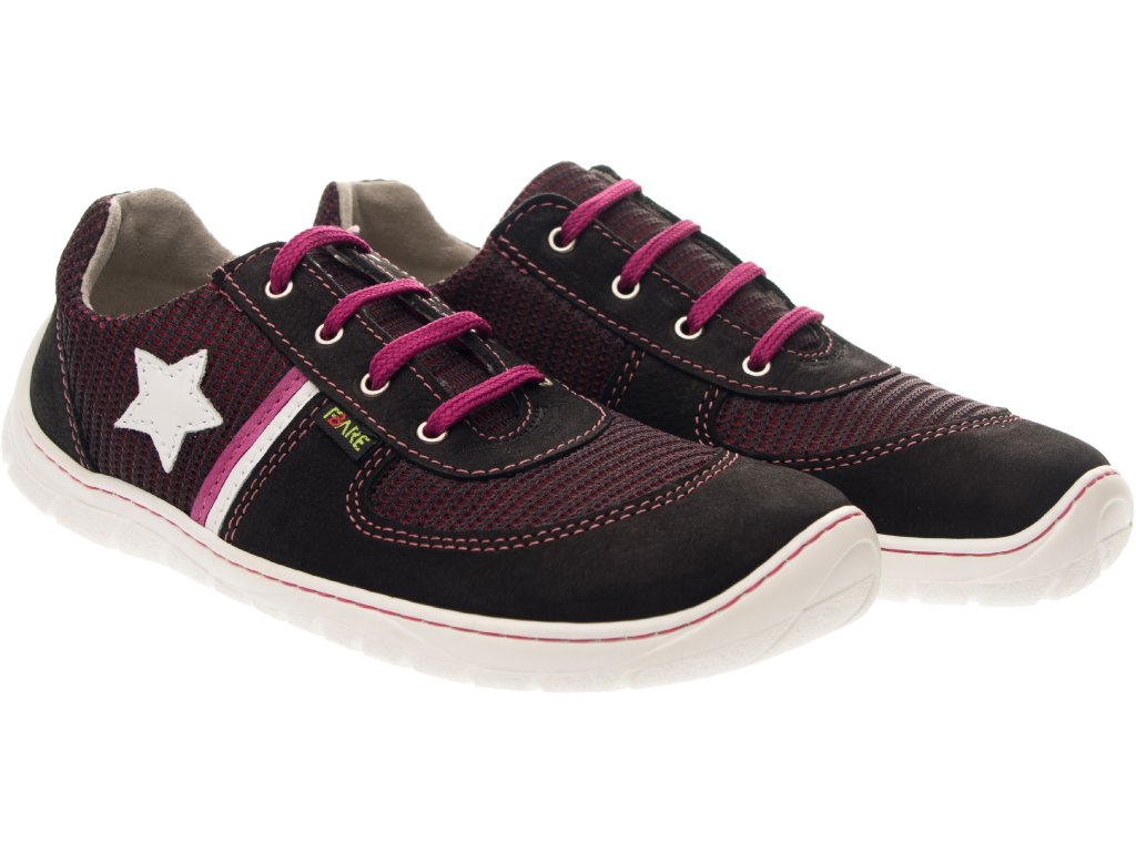 Dívčí Fare Bare tenisky. Tyto nové modely typové řady FARE BARE se odlišují od běžné klasické produkce především výrazně větším prostorem v prstové části. Mají ambici neomezovat vývoj nohy zejména v přední části chodila, kde poskytují mnohem větší prostor. Vynikají také svojí lehkostí a flexibilitou.