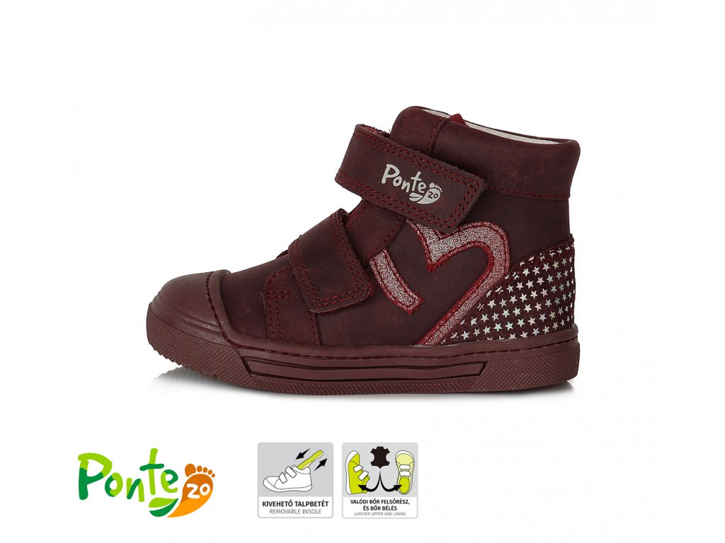 Celoroční kožená kotníková obuv Ponte 20. Botky jsou vyrobeny z kvalitní kůže, zapínání na 2 suché zipy. Boty jsou lehoučké, podrážka je měkká, velmi ohebná, anatomicky tvarovaná vyjímatelná kožená stélka a pevný opatek.