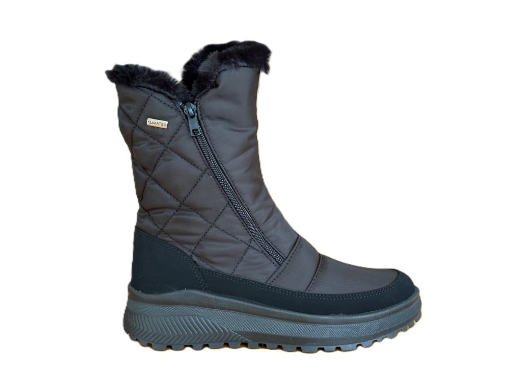 Dámské kozačky Santé s membránou. Boty mají vyjímatelnou stélku, která má zespodu izolační 5 mm vrstvu, zapínání z vnitřní i vnější strany je zip pro lepší prozutí. Boty jsou zateplené kožíškem.