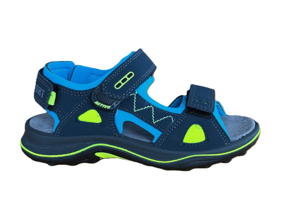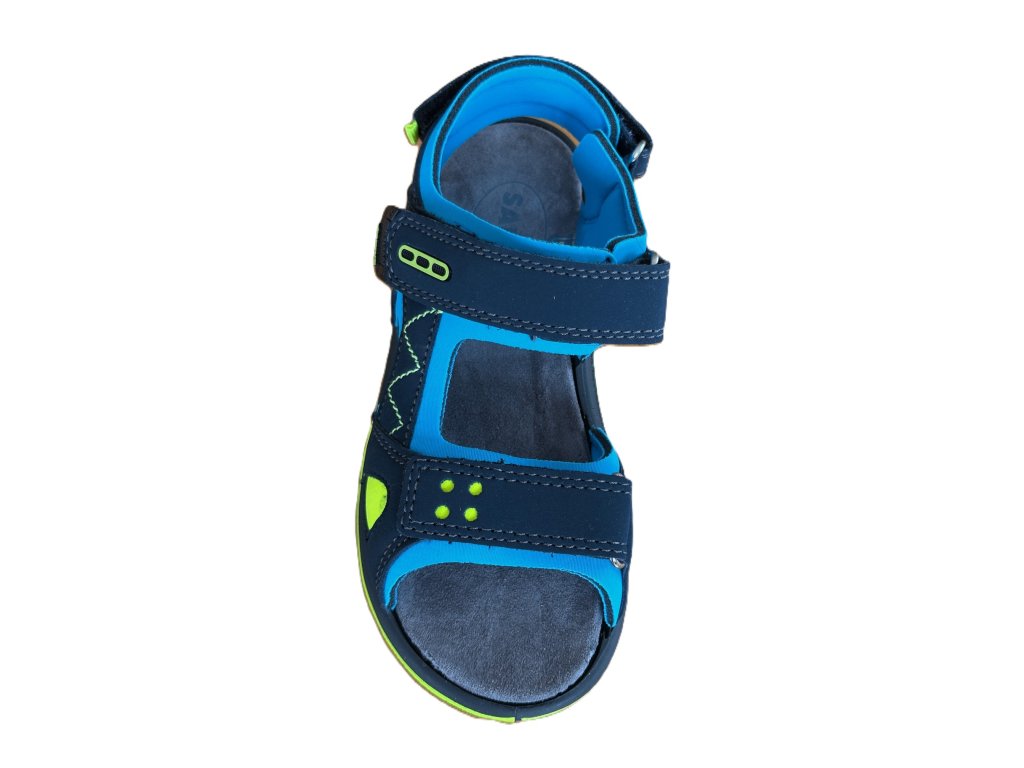 Kvalitní modré sandálky Santé. Botky jsou lehoučké, krásně ohebné, mají anti-šok systém (tlumí nárazy na patě). Zapínání na 3 suché zipy.