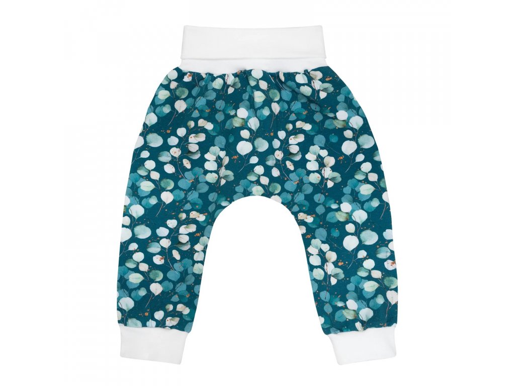 Moderní dětské parkour tepláky Eucalyptus. Moderní střih v pase s pohodlným pružným lemem. Tepláky v provedení pro jakýkoliv čas i aktivitu ve velikostech 74 až 86. Český hand made výrobek od ESITO.