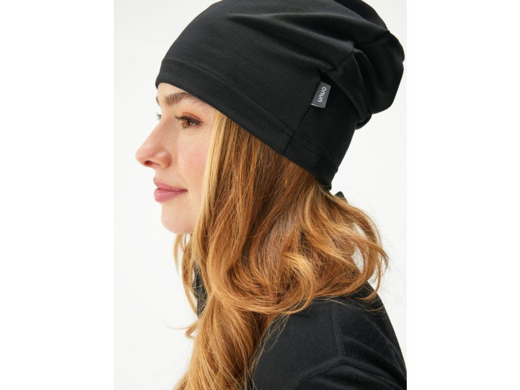 Kvalitní bavlněná čepice Unuo v černé barvě. Skvěle sedí, příjemná na dotek, skvěle se bude hodit jak do města, tak do přírody.