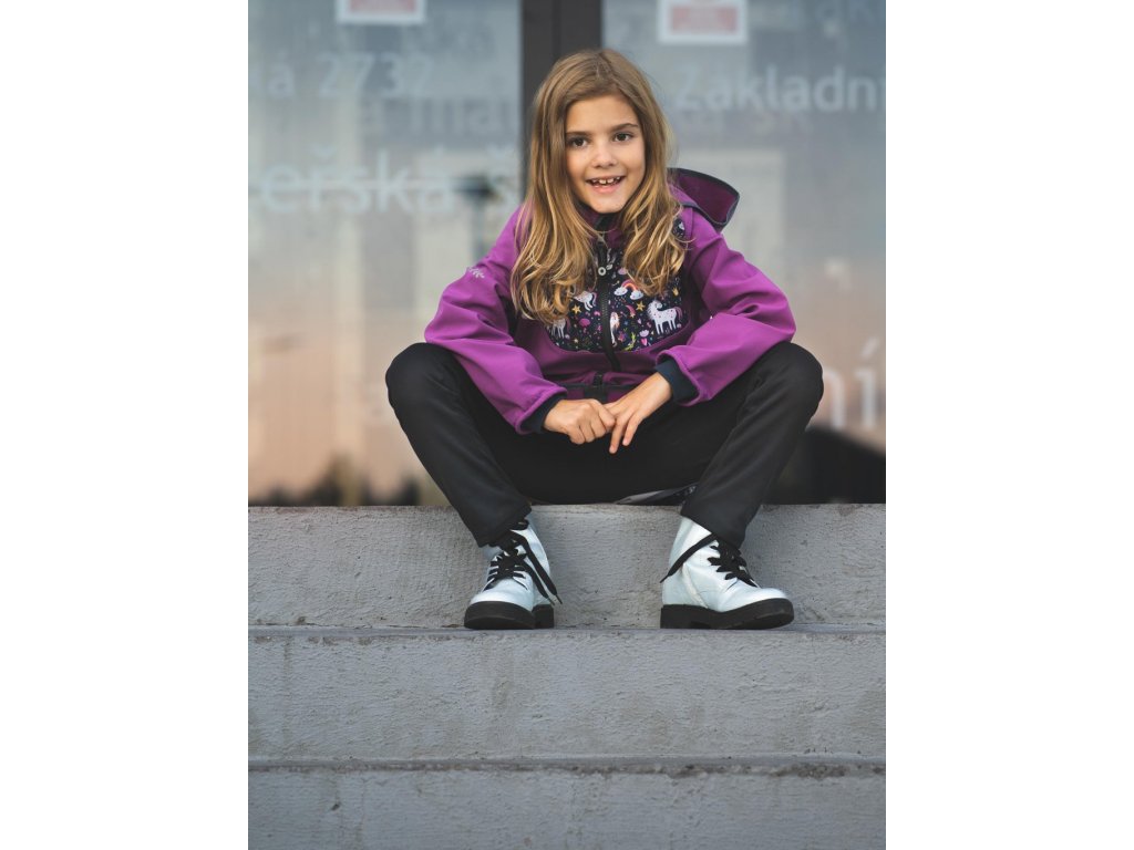 Sporty softshellky jsou fantazií každé maminky. Představte si kalhoty úzkého a přiléhavého střihu, které si vaše princezna obleče ráno do školy, vyšvihne v nich násobilku na jedničku a cestou domů si v nich užije nezřízené venkovní lumpačení v kalužích. Na levé nohavici vzadu jsou kalhoty opatřeny reflexním prvkem, protože bezpečí je vždy až na 1. místě! Společně s funkční elegancí.